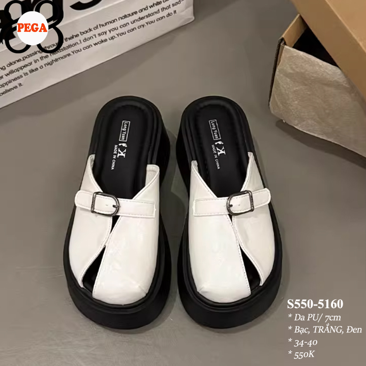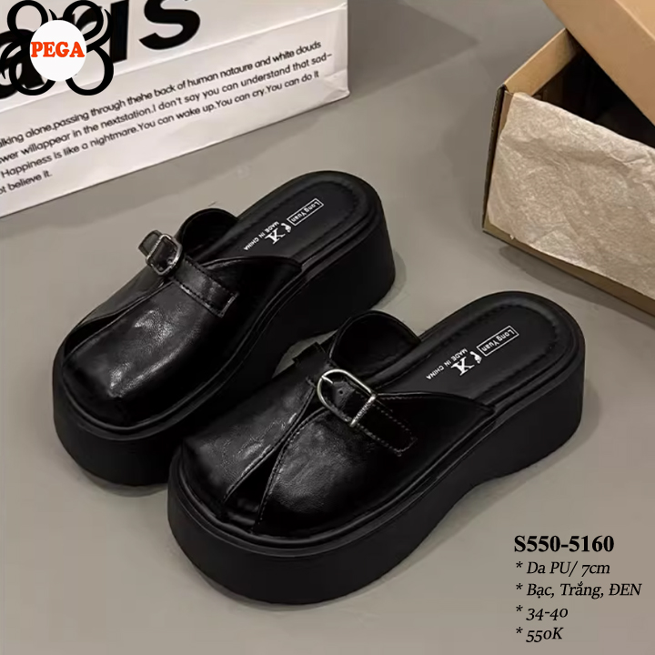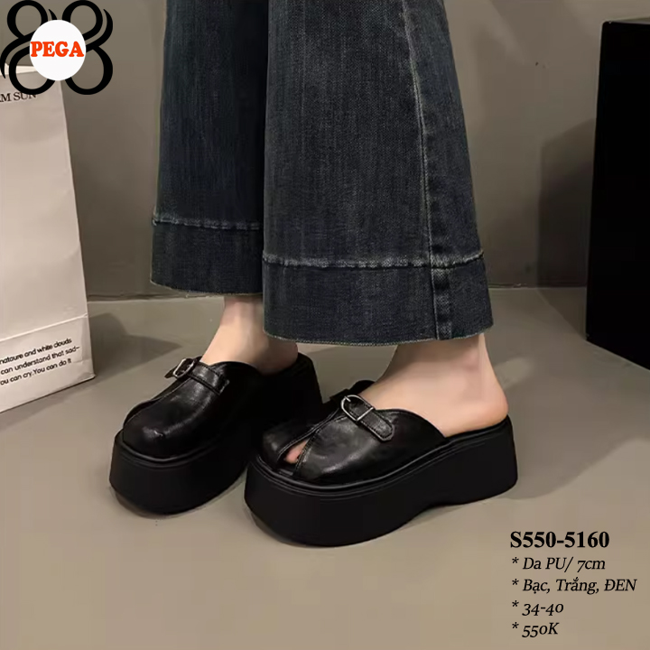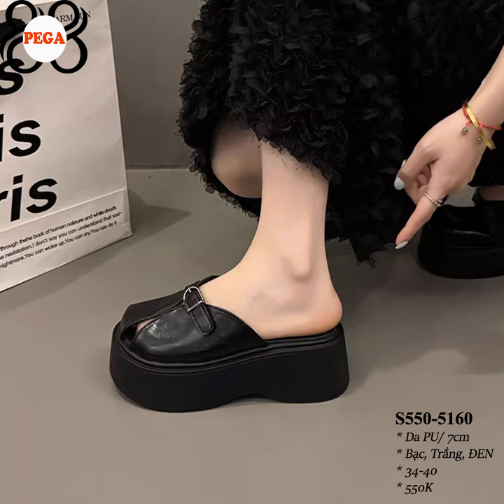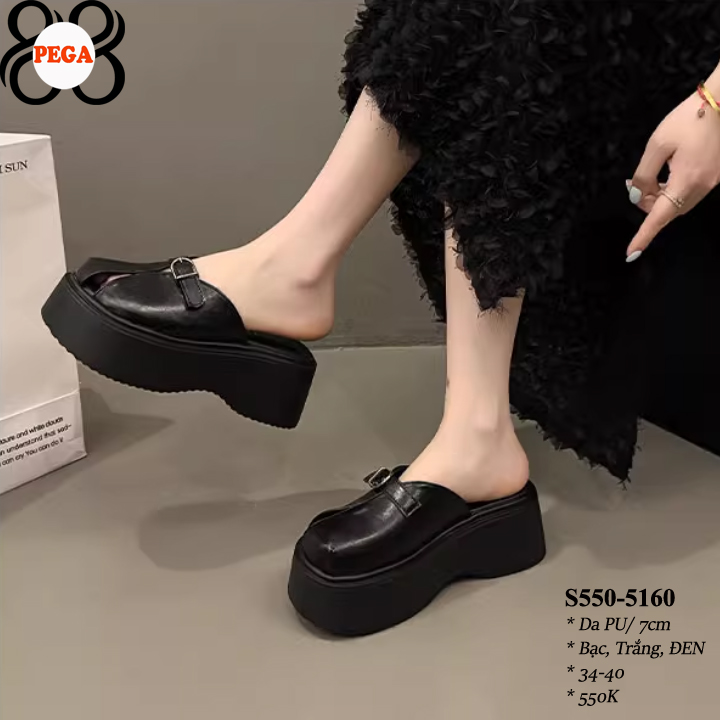 ĐẾ ĐEN - Dép Sục Bít Mũi Hở Gót 7CM da PU Lót Da Êm S550-5160