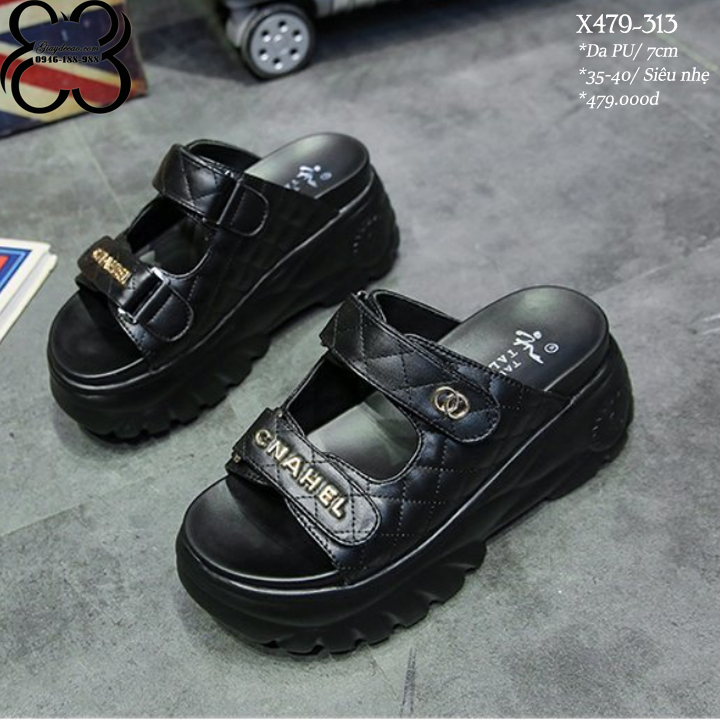 Dép Xuồng 3 Quai Ngang Đá Đế Cao 10.5CM X590-0482