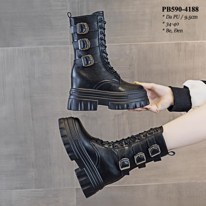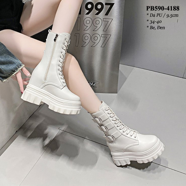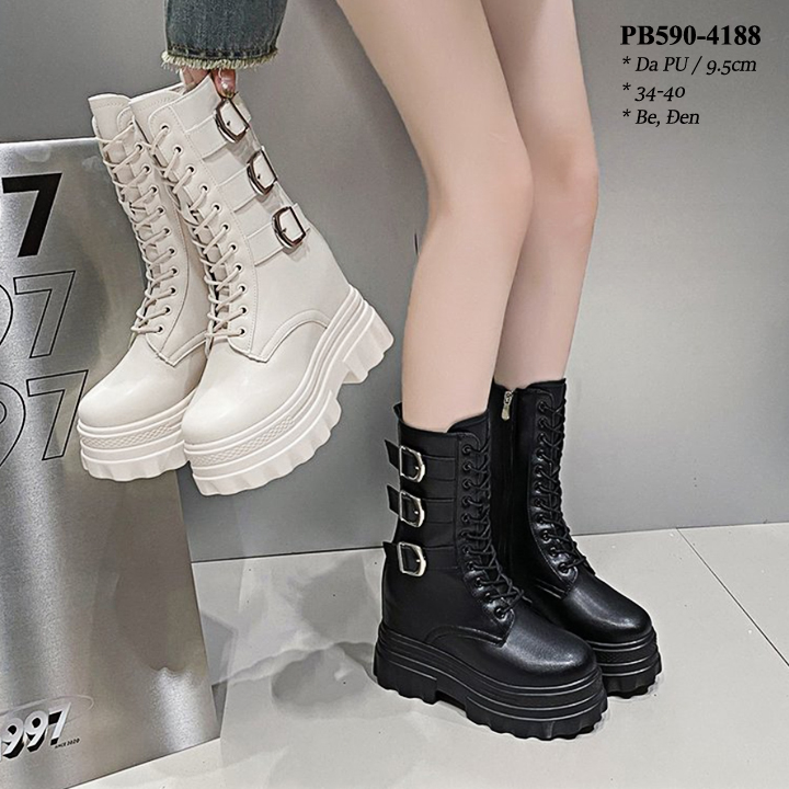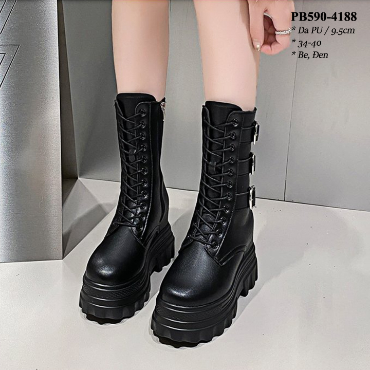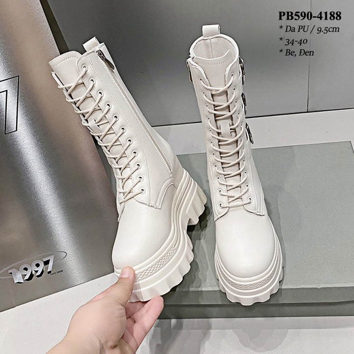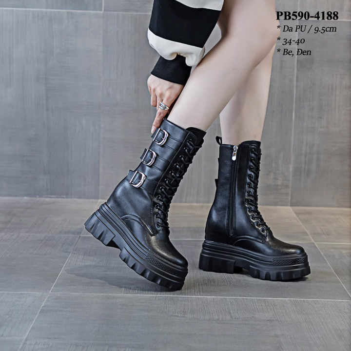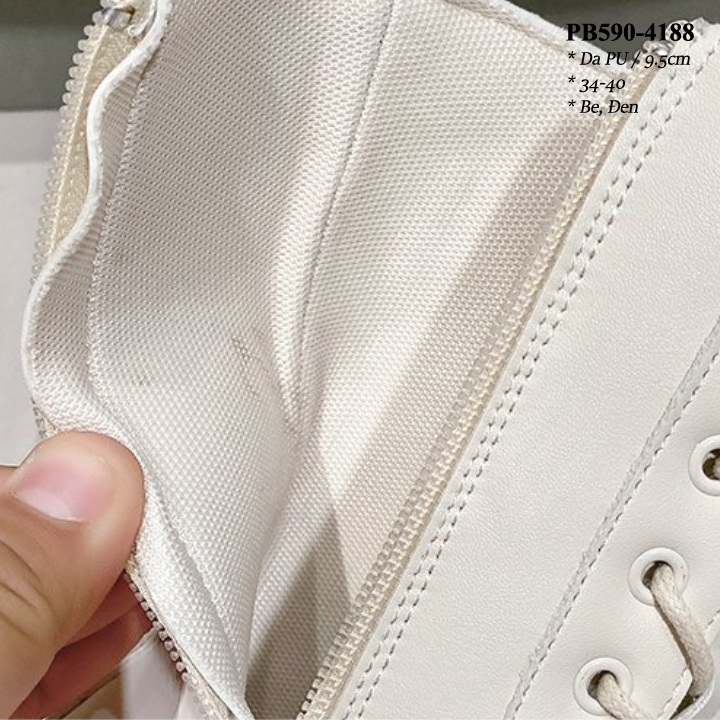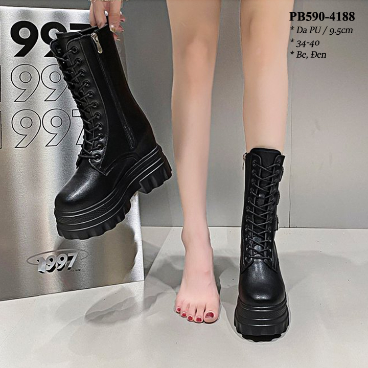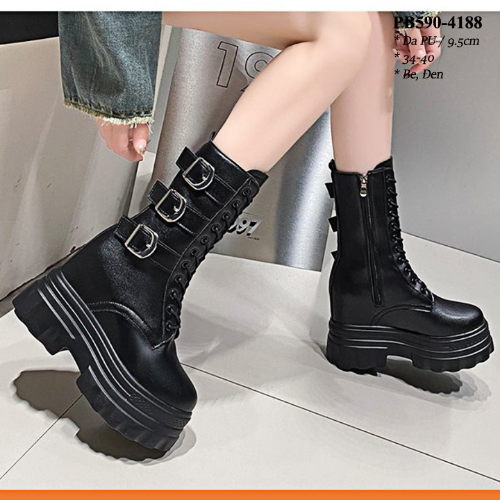 Boots Cổ Ngắn Đế Đúp Thắt dây kéo khóa Cao 8CM PB590-4245