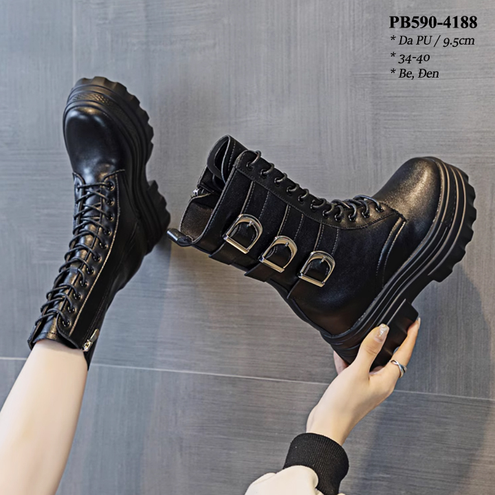 Giày Boots cổ lỡ 3 quai Đế xuồng 9.5cm PB590-4188