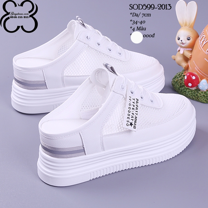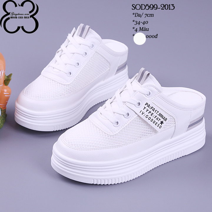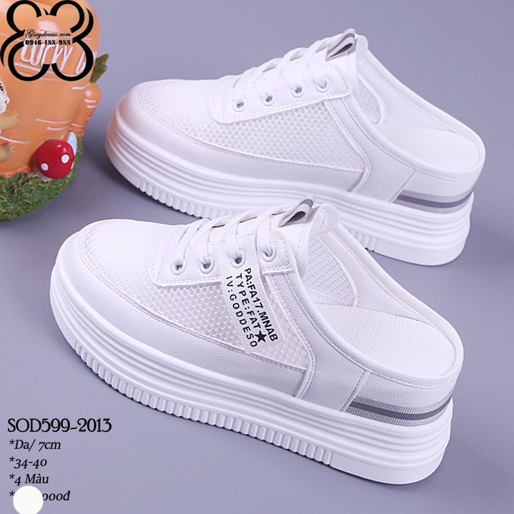Giày Sục Phối Tem 7CM SOD599-2013 Trắng xám